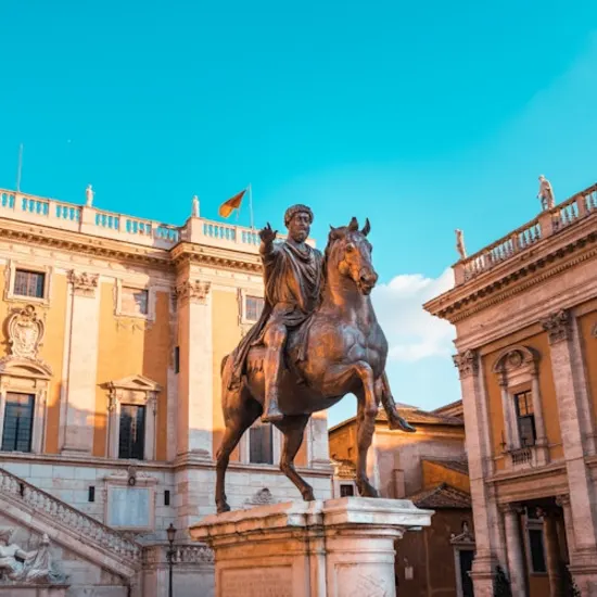 Discover the celebrated bronze statue of Emperor Marcus Aurelius, a rare surviving example of a monumental imperial equestrian sculpture. While the one in the center of the piazza is a copy, the preserved original is displayed indoors in the Palazzo dei Conservatori, allowing visitors to see its incredible detail and scale up close.